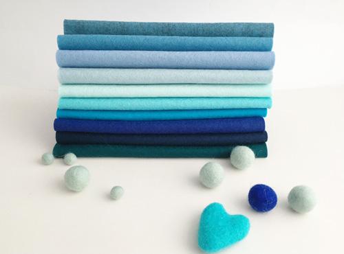 This carefully selected collection of 10 sheets of 100% wool felt in gorgeous blue shades.